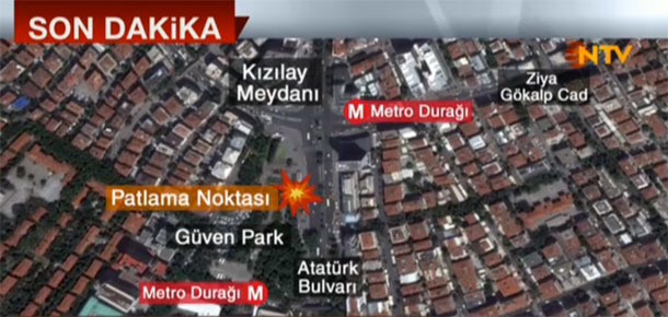 Взрыв произошел в 19.45 мск в воскресенье на автобусной остановке вблизи одного из офисов премьер-министра Турции в самом центре турецкой столицы в момент большого скопления людей на остановке общественного транспорта. По предварительной версии полиции, причиной взрыва стал заминированный автомобиль, который взорвался, находясь между двумя автобусами.
