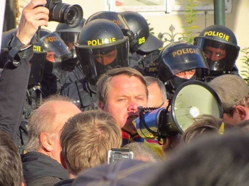 Kalousek addressed the crowd, saying they had a right to go to the square. The crowd chanted back that they had the right.