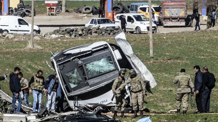 The attack took place a day before Prime Minister Ahmet Davutoglu, whose government has waged a relentless campaign against Kurdish rebels since last summer, was to make a rare visit to the city.