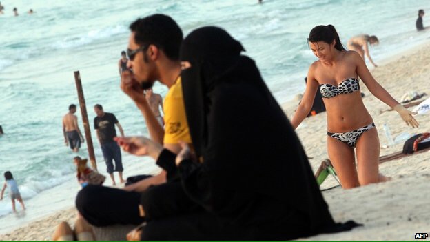 EAN xəbər verir ki, ərəb qadınların dənizə çadra ilə girdiyini əks etdirən şəkillər müzakirələrə səbəb olub.
