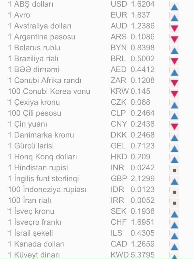 Bu günə olan Valyuta -AZN məzənnələrin tam siyahısı Manatın dəyər itirməsi davam edir