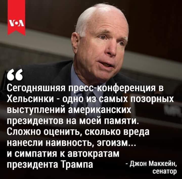 «Сегодняшняя пресс-конференция в Хельсинки была одним из самых позорных выступлений американского президента в истории. Урон, нанесенный наивностью президента, эгоизмом, ложным пониманием эквивалентности с автократиями и симпатией к автократам, трудно даже оценить. Но ясно, что саммит в Хельсинки был трагической ошибкой.
