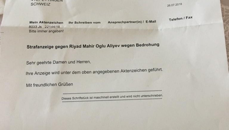Uns liegen Informationen vor, dass Riad Aliyev den deutschen Behörden (BAMF) unwahre Informationen übermittelt hat, dass sein Bruder ein politischer Gefangener des Zentrums für den Schutz politischer Gefangener Aserbaidschan ist.