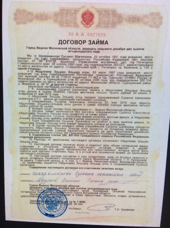 Эти документы касаются ряда соглашений, подписанных между сыном „бывший мощенник ректор“ Международного университета Абдуллаевым Эльшаном Эльшад оглу, 1987 года рождения, и армянкой Шахрамановой Сусанной Шагеновной, 1961 года рождения в Баку проживающий в городе Москве