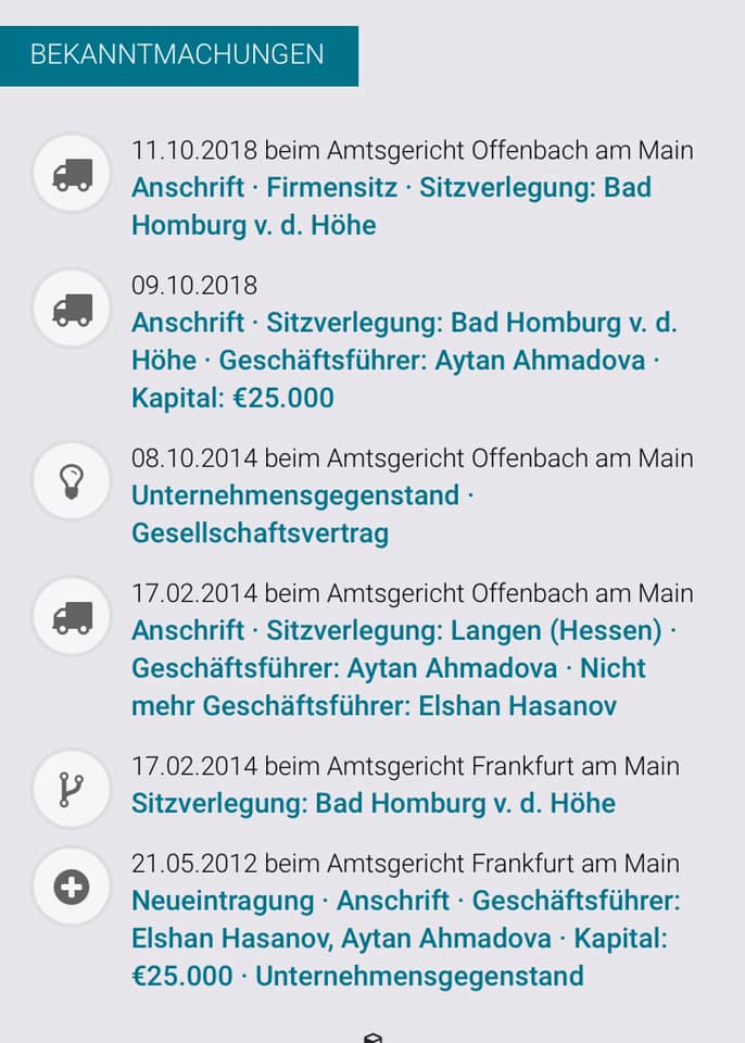 Список компаний в Германии агент российских спецслужб Эльшад Абдуллаева