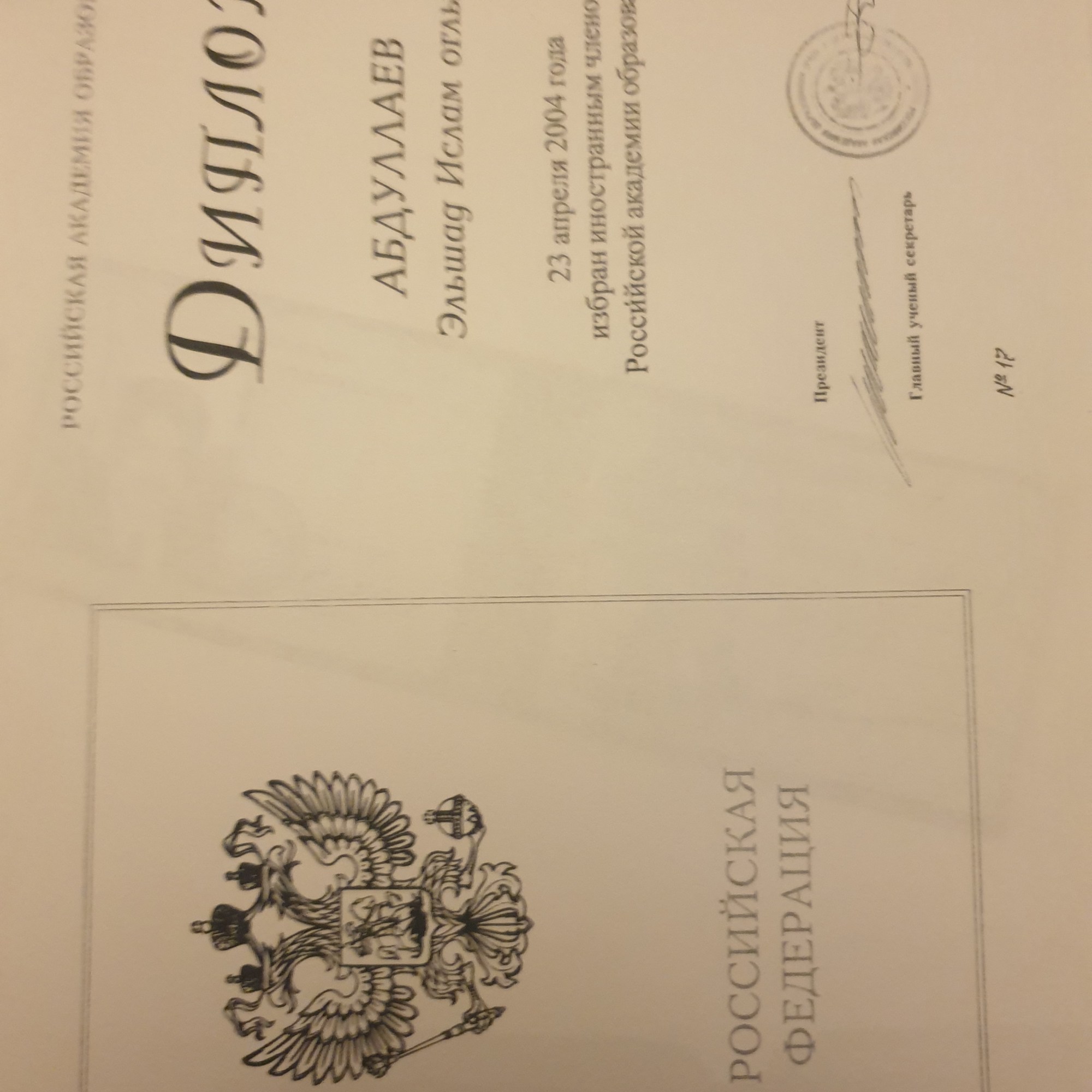 Оказалось, что мошенник Эльшад Абдуллаев использовал поддельные печати, чтобы присвоить себе почетные научные звания.