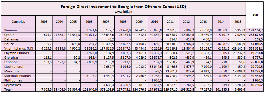 In 2011-2020, up to USD 5.2 billion in foreign direct investment came to Georgia from countries with offshore territories, which is 38% of the total foreign investment attracted by Georgia during this period.