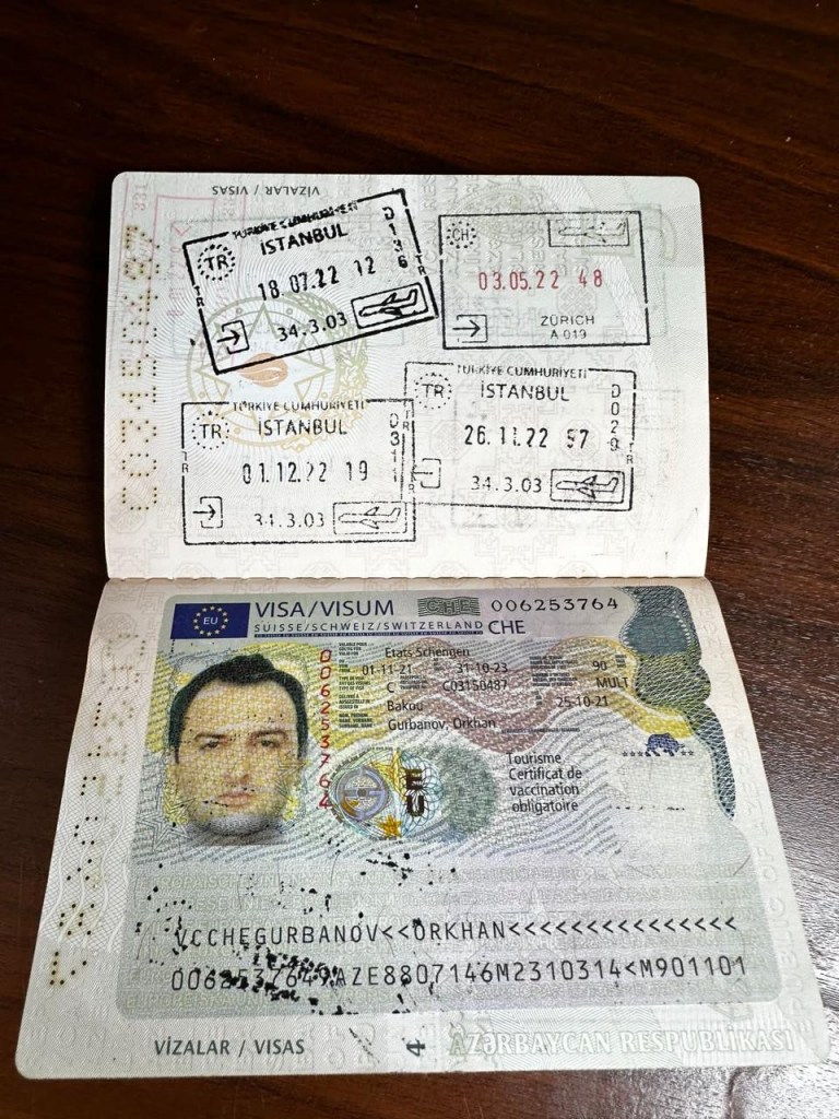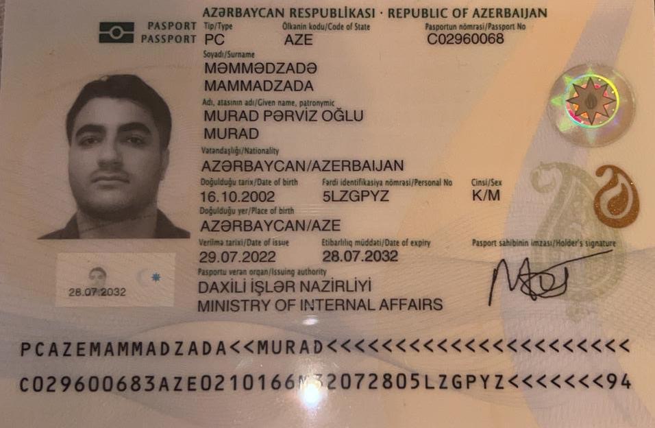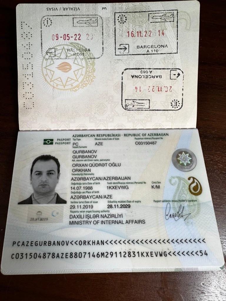 Diplomatic passport issued by the Ministry of Foreign Affairs of Azerbaijan in the name of Orkhan Mammadov, Director of the Istanbul Office of the Caspian Maritime Department.