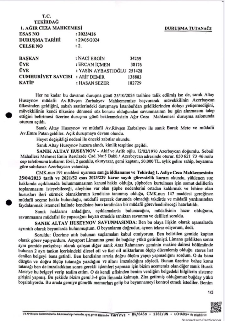 The captain of the Azerbaijani ship, Altay Huseynov, who was arrested in Turkey and brought to trial, leaked some information to the media.