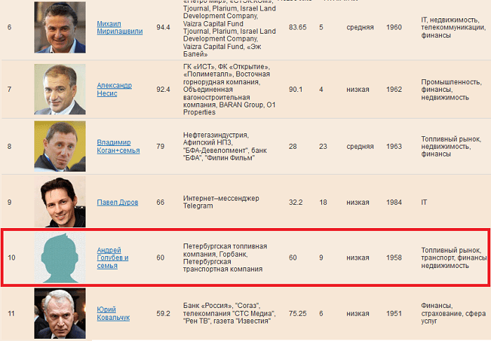 In the end, Kum was imprisoned, while Podshivalov was not touched. He still holds a controlling stake in PTK. In the rating of the richest people in St. Petersburg, compiled by the newspaper Delovoy Peterburg, in 2015 Podshivalov and his “family” took 10th place with 60 billion rubles. They even slightly outstripped Kovalchuk (“Kosoy” from the “Ozero” cooperative).