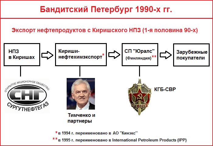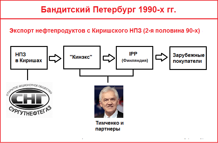 As a result of a series of machinations (including deliberate bankruptcy), in 1994 it was taken over by the already familiar brigade: Timchenko and his three partners (Katkov, Malov, Adolf Smirnov). In 1995, they also bought out the Urals joint venture in Finland, which became known as IPP (International Petroleum Products). Now the entire chain of oil product sales abroad was in their hands.