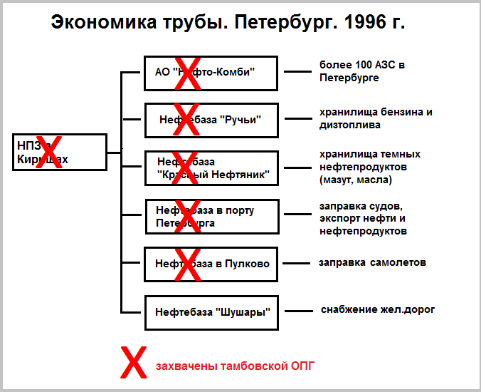 “Ruchi” is the same oil depot with gasoline storage facilities that the bandits took away from Surgutneftegaz in 1996. The “team” that worked together was the Tambov organized crime group, security officers and officials.
