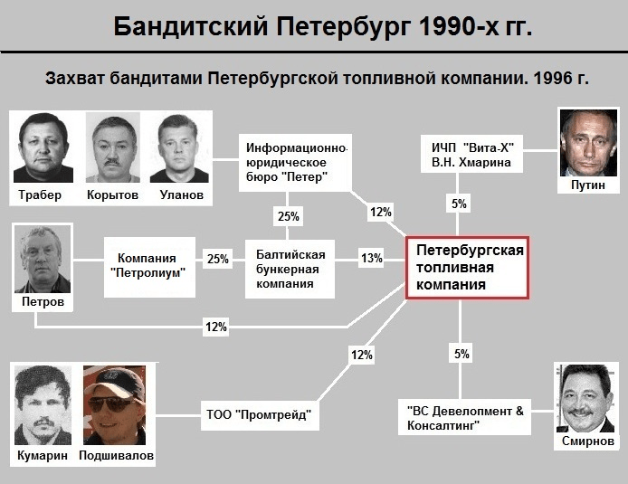 The true meaning of the transfer of Putin’s and Smirnov’s shares to Kumarin’s financiers is still unknown. Most likely, Putin and Smirnov simply sold their 15% to the gangsters, leaving the business with a profit. They entered PTK for pennies in the 90s, on corrupt connections, and in the 2000s the company was already worth almost a billion dollars.