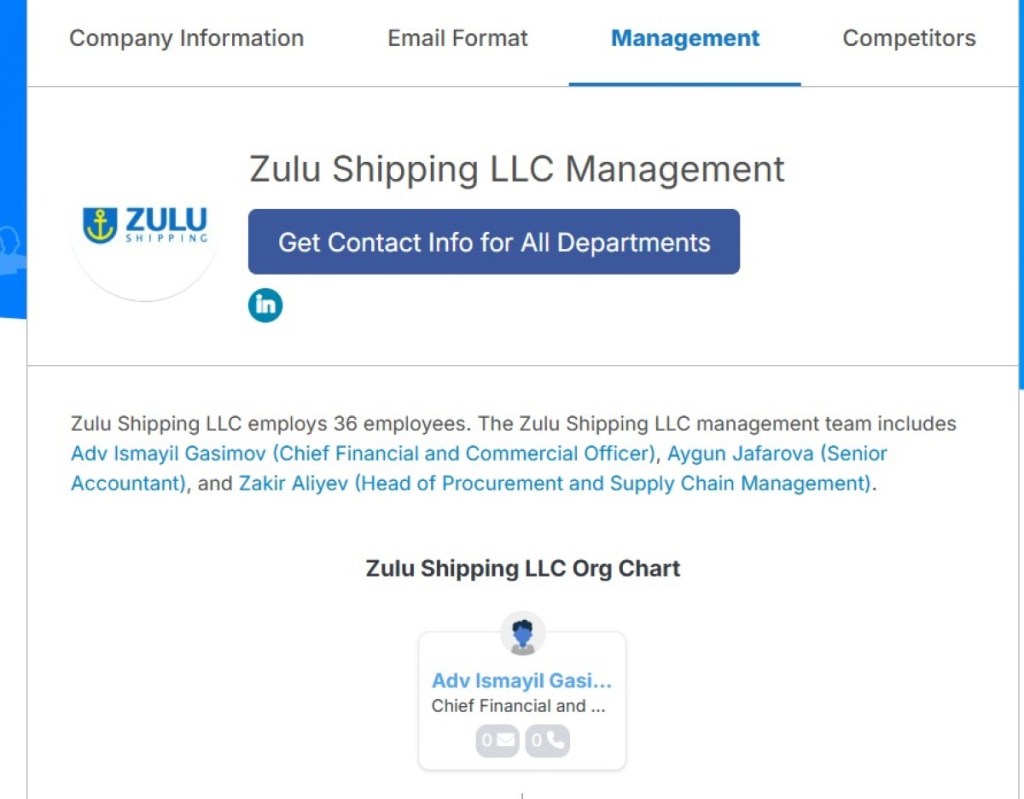 Investigations reveal that the management of Zulu Ships Management and Zulu Shipping LLC — both registered in Abu Dhabi — is largely composed of Azerbaijani nationals.